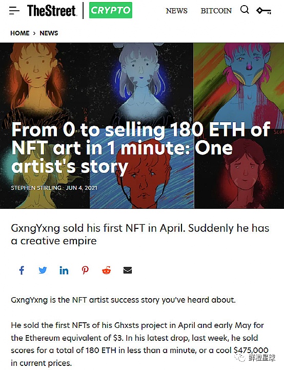 啥是改變人生??一個月前默默無聞的華裔藝術家公羊新發行的十二星座系列在一分鐘內賣出180ETH,其NFT項目Ghxst上線一個月總交易量超過800ETH(藝術家有10%提成)?一路沖進Opensea(OS)前十。18歲藝術家FEWOCiOUS從一年前高中輟學到本月底即將登上佳士得拍賣行,他的NFT畫作在過去的一年內賣了上百萬美金。