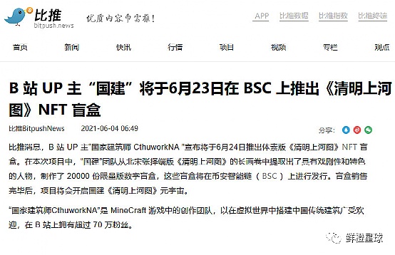 國內對NFT的關注度也慢慢起來了,上海舉行了首屆NFT加密數字藝術展,數字文藝復興基金會的曹寅經常帶隊在CV元宇宙探險,B站的國家建筑師下周即將推出清明上河圖NFT。