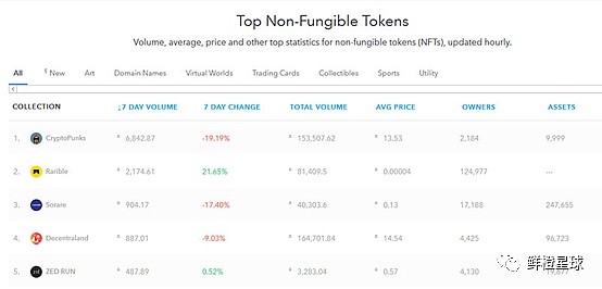 拿長期霸榜的Cryptopunks舉例, 他的OpenSea主頁上面寫著一共有10000個Punk, 2200個不同擁有者(錢包), 歷史平均交易價格13.53 ETH, 總交易額153.5K ETH (約4億美金). 主頁上也有官網, Twitter, Discord鏈接. 但由于Cryptopunk比較老, 不在ERC-721上面, 所以交易一般直接發生在Larva Labs官網,或者Wrapped Cryptopunk的OpenSea頁面(打包Cryptopunk才能在ERC-721上面交易)。