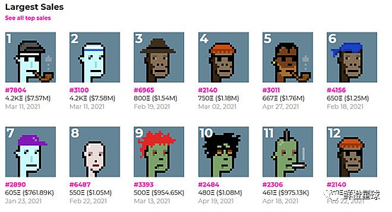 有趣的是,免費的也沒有人領,上線后兩周只有小幾百個被領走。 Larva Labs去找Mashable博主寫了一篇推廣軟文,才成功把剩下的全部發放完畢。 而這9000個一共也就發給了幾百個人,最多的一個人認領了上千個,認領了超過300個的人也有好幾個。 當時幣圈的大多數人都看不懂 Cryptopunk的價值,一個隨時能復制粘貼下載的頭像為啥還需要認領/購買。 但正如軟文博主最后說的一樣,"也許有一天,擁有一個Punk是一種身份的象征,一張證明你是幣圈OG投資者的憑證,也有可能僅僅是一張普通的圖片"。