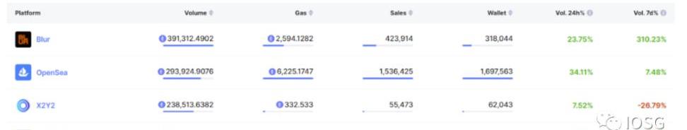 隨著越來越多的玩家進入市場,一個明顯的趨勢是人們對于NFT的交易速度和購買效率正在提出更高的需求。在OpenSea或其他傳統的NFT市場中,慢慢等待項目上線,慢慢等待競拍的模式已經略顯過時。在Blur類似的聚合器中,更專業的數據分析功能,使得人們可以進行更快節奏的銷售和購買,所以它更像一個「交易所」。而市場已經證明,目前而言NFT玩家顯然更擁護「效率至上」。同時我們也注意到,隨著用戶對NFT交易提出更高的要求以及專業DeFi交易者的涌入,數據分析功能和聚合器品類的結合正在變得越發緊密。