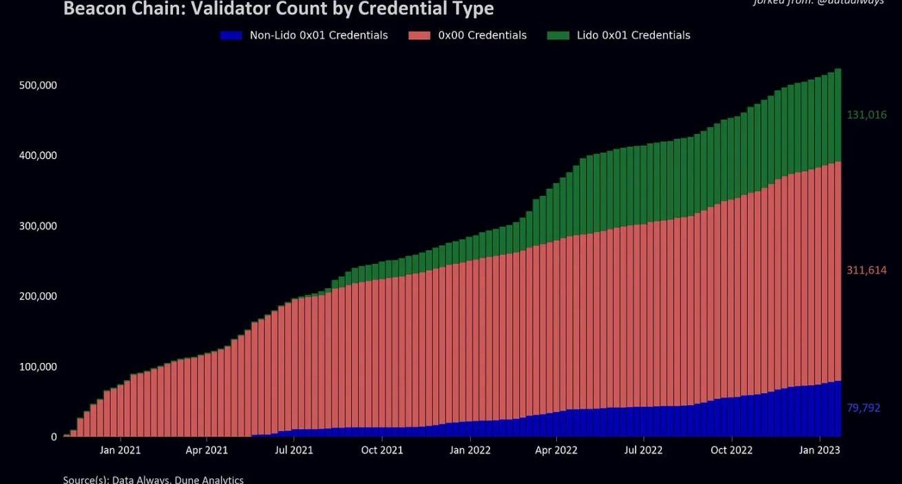 時至今日,大約20%的新驗證者沒有設置0x01憑證,它們可能是使用過時指南的個人和未更新程序的機構。