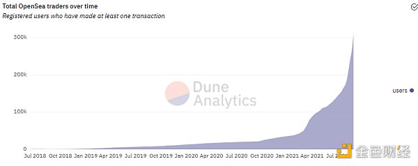 而截止6月底Opensea用戶數為14萬,也就是說,超過一半的交易用戶來自7月和8月。