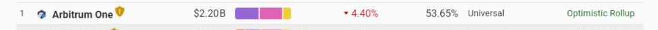 而組成這些數據的L2方案中,同為使用OptimisticRollup技術的兩大主流方案Arbitrum和Optimism就占據了總份額的~80%。