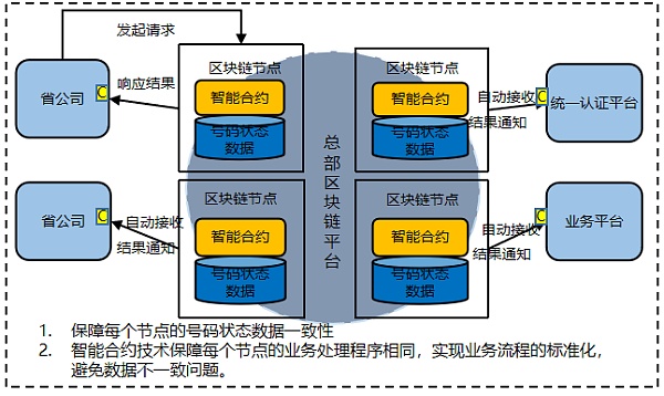為保證數據一致性,中國移動信息技術中心作為中國移動IT領域的專業機構,2019年12月提出將區塊鏈技術引入統一認證系統并制定區塊鏈解決方案,利用“移動鏈CMBaaS(China Mobile Blockchain as a Service)”平臺提供的共識算法、智能合約、分布式文件系統等技術特性,三方平臺通過區塊鏈節點將用戶狀態數據上鏈,并從鏈上獲取業務數據,由此保障平臺數據的一致性,解決統一認證系統中號碼狀態不一致問題,提升統一認證號碼鑒權質量。2020年7月,中國移動信息技術中心協同山東移動、江蘇移動、中移互聯網公司完成統一認證區塊鏈應用上線,實現號碼狀態數據上鏈。應用試點效果良好,大幅提高了數據一致性,相較于傳統技術手段,號碼狀態準確率提升了37%,整體準確率達到99.9%,滿足業務要求。目前,統一認證區塊鏈應用案例正在依托CMBaaS平臺向其他29個省份推廣。