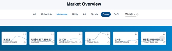 同步的,從更細分的領域來看,來源于NonFungible的數據趨勢圖,收藏品、元宇宙、公共事務的各板塊都呈現下降趨勢,游戲在小幅下落后釋放出上漲信號。這也從側面反映出,大環境影響市場各板塊的發展繁榮,但擁有越多用戶擁躉的板塊,將更具應對市場的風險考驗的能力。