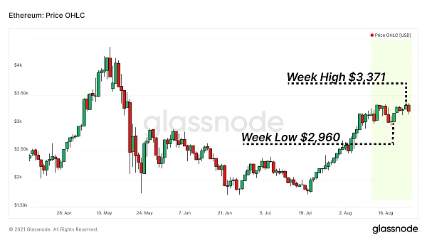 近期ETH價格保持在2900美元至3400美元的區間內,少數替代類公鏈項目在過去一個月中價格都出現強勁上漲。主要有:Solana (SOL)、Avalanche (AVAX)、Cosmos (ATOM)和Terra (LUNA) ,上漲均在85%以上。其余大多與BTC和ETH同步發展,Polkadot和BSC等其他Layer 1區塊鏈也出現反彈,不過與SOL、AVAX和LUNA相比,表現仍然稍微遜色。