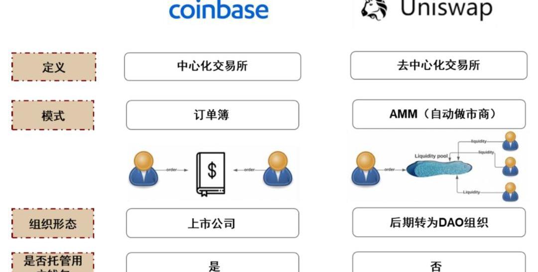 以去中心化交易所Uniswap為例,其成立于2018年11月,創立者是HaydenAdams,最早創立的Uniswap是公司形態,且2020年獲得了VCa16z的2.2億美元融資。然而,從產品形式來看,Uniswap擁有與傳統中心化交易所如Coinbase截然不同的產品理念:相對于Coinbase等中心化交易所,Uniswap的產品理念融入了更多Web3.0去中心化的理念。