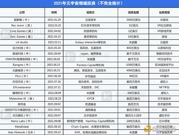 《區塊鏈日報》記者發現,諸多元宇宙相關領域公司也在獲得了資本支持。從虛擬社交平臺到虛擬人,從廣義的游戲到VR/AR公司等,這些元宇宙被投標的背后,都站著實力雄厚的基金。