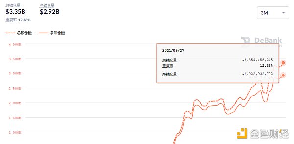 DeFi項目鎖定資產前十排名及鎖倉量,數據來源:Debank