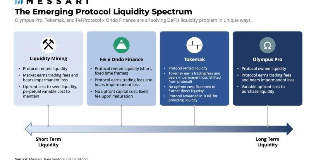 在頻譜的另一端,您有諸如OlympusPro之類的提供商,它允許協議通過Olympus綁定計劃擁有其流動性,類似于優先股,流動性礦工購買協議債券產生協議控制價值,以換取債券與資產市場價格之間的價差。