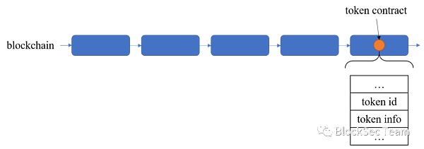 如圖六所示,這一類的NFT和上面的NFT不同,這種NFT合約內部還存儲了和每一個token一一對應的一個外部鏈接,因此在這種NFT中,一個token的信息不僅僅保存在鏈上,還有一部分是保存在鏈下的,因此,對于這種NFT,合約中會保存token對應的外部URI信息。