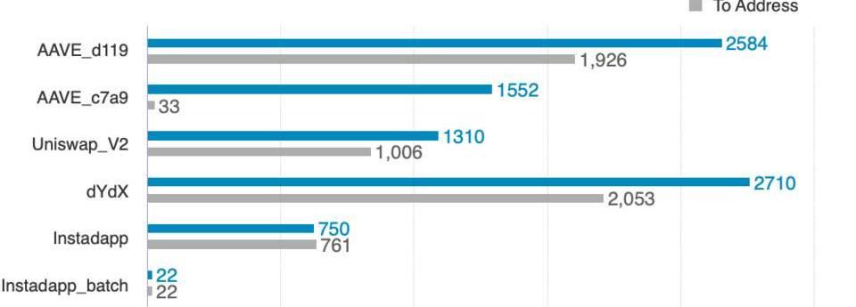 FromAddress與ToAddress于各個協議的數量分布圖,來源:Etherscan.io,HuobiDeFiLabs