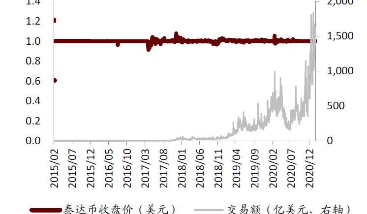 ?泰達幣誕生于2015年,是穩定幣的代表。鑒于比特幣等加密貨幣幣值波動劇烈,穩定幣應運而生,泰達幣幣值與法幣錨定,背后有充足的法幣現金或現金等價物作為保證金,1個泰達幣可隨時在泰達平臺上兌換為1美元,技術上亦使用區塊鏈。