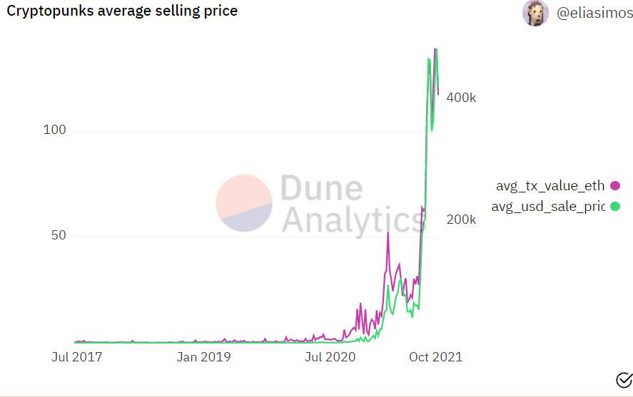 CryptoPunk 是頭像 NFT 的鼻祖,是 2017 年 6 月由 Larva Labs 發起的總量 10000 個的像素頭像,總銷售額約 14.8 億,常年占據 NFT 收藏品第一位,地板價也來到了 108ETH,而地板價往往代表著社區對于項目的共識,由此可見 Crypto Punk 在社區中的地位。而由下圖 CryptoPunk 的平均售價可以看出,它不是在一經推出就有像現在的超高售價,而是在 2021 年 7 月中旬的一個周末開始了狂歡,并引領了長達數月的「頭像風暴」。我們認為 CryptoPunk 的重要意義在于它代表了以太坊的除了金融價值之外的文化價值。Bankless 的聯合創始人 David Hoffman 也曾提出以太坊作為「文化結算層」的觀點。隨著以太坊的價值開始被全世界認可,作為以太坊文化的產物 CryptoPunk 便變成了有收藏價值的以太坊信仰,而也有人認為 CryptoPunk 賽博朋克的設計一定程度上代表了加密世界革命的「反叛精神」。無論 CryptoPunk 的意義是什么,我們認為從長遠來看 CryptoPunk 因為其歷史地位、首創性和稀缺性都會被賦予越來越高的價值,短時間內它的地位不會被撼動,它在 NFT 中的地位就可以比作是 Crypto 中的 BTC,是頭號藍籌 NFT, 是一種身份和地位的象征。