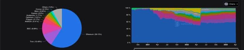 本周TVL總量上升1.1b。ETH鏈占比小幅上升,從上周的58.56%上升到59.15%,近幾個月的大趨勢看eth生態的TVL仍然在穩定上升。從近七日的數據看,Optimism的TVL已經連續幾周下跌,本周下跌0.26%,其他Layer2的公鏈都在繼續上漲。Arbitrum上漲0.97%,Polygon上漲2.33%,、Avalanche上漲3.6%。三、各鏈協議鎖倉量情況