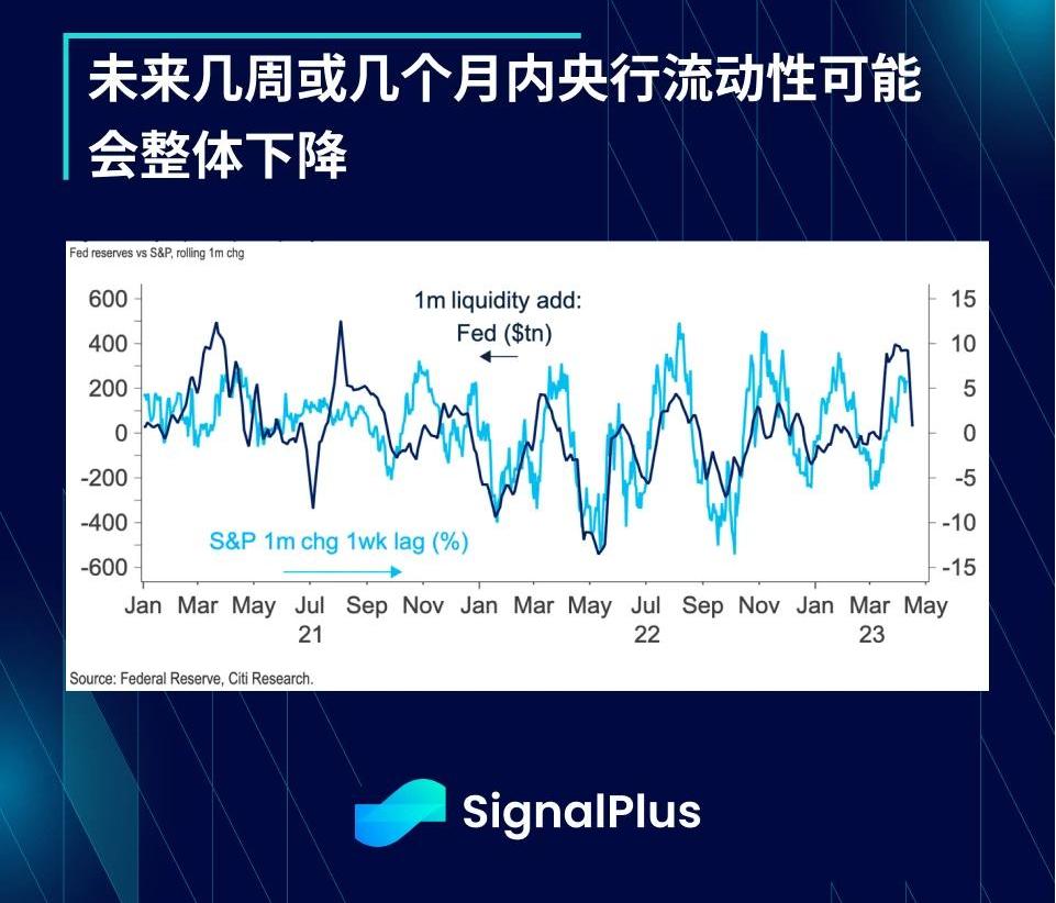 提到現金管理,在SVB相關救助行動導致資產負債表擴張后,市場應該為流動性放緩和回撤做好準備,其中包括更高的TGA回填、RRP活動、持續的量化緊縮、中國寬松政策步調放緩,加上債務上限問題的攪局。