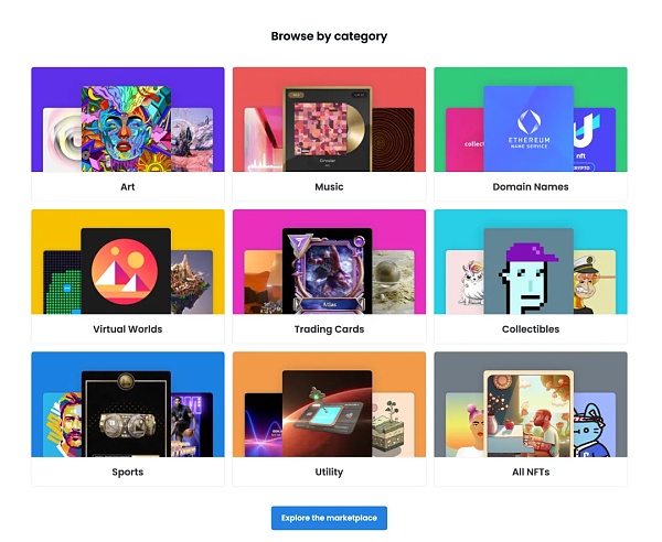 OpenSea將其選擇分為八個類別:藝術、音樂、域名、虛擬世界、交易卡、收藏品、體育和實用程序。