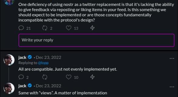 我在不同社交媒體平臺上做了幾次參與度測試,Nostr的表現一直比預期要好。盡管我的Twitter受眾規模幾乎是我推文的100倍,但我的Nostr筆記往往會獲得25%到100%以上的參與度。也許這只是欣喜若狂的蜜月期,我們將看看它是否可以持續。Nostr每天都在改進。當我幾個月前開始使用它時,甚至沒有辦法轉發或給其他人的筆記點贊,更不用說通過閃電網絡打賞了。