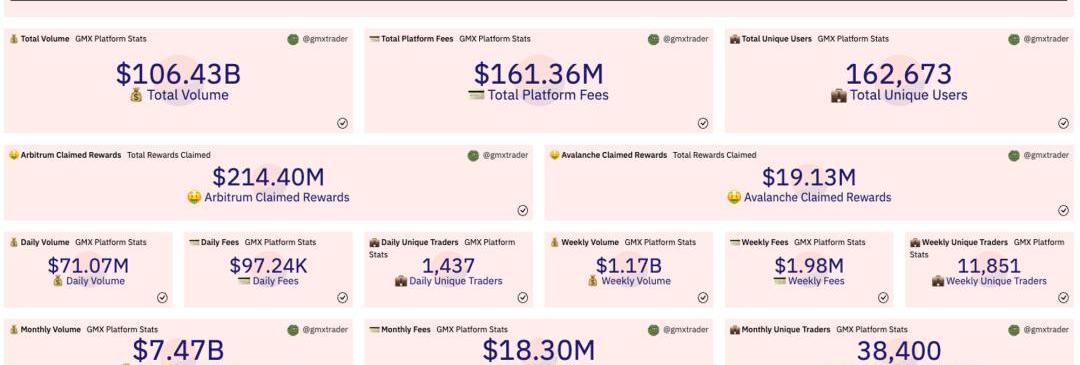 XRP/HKD-5.57%自22年GMX代幣上線幣安后,GMX的各項數據接連創下新高。截至目前,GMX的平臺總交易量已超過1000億美金,AUM超10億美金,獨立地址超過16萬,分發給用戶的費用超過1億美金。