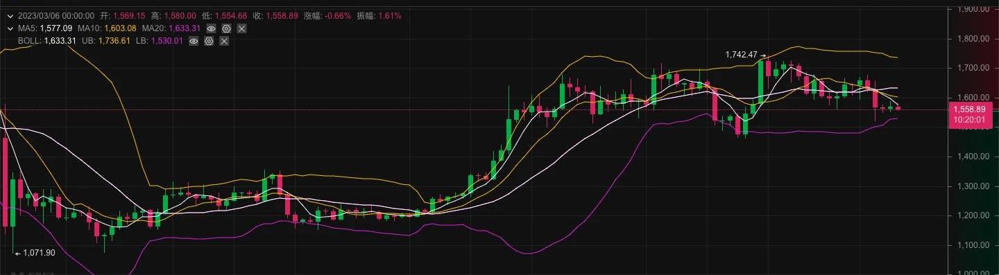 以太坊開發人員在周四的雙周電話會議上就目標日期達成一致,計劃在3月14日讓Goerli測試網完成上海升級;以太坊的主區塊鏈將在Goerli之后3-4周進行Shapella升級,這意味著將在4月進行ETH質押提款,這與以太坊開發人員設定的3月原始時間表略有延遲。EIP-4895發起者AlexStokes發推稱,以太坊Sepolia測試網已激活Shapella升級,到目前為止看起來進展順利。據此前報道,以太坊區塊鏈的核心開發者計劃2月28日于epoch56832在Sepolia測試網絡上進行Shanghai+Capella升級。Shanghai+Capella也被稱為Shapella,旨在從網絡驗證器中進行ETH提款,這一功能在該網絡過渡到PoS共識期間未啟用。這次升級結合了對執行層和共識層的更改。二級市場方面,目前ETH價格短時可能繼續盤整,支撐位1550美元,阻力位1600美元。二、二級市場