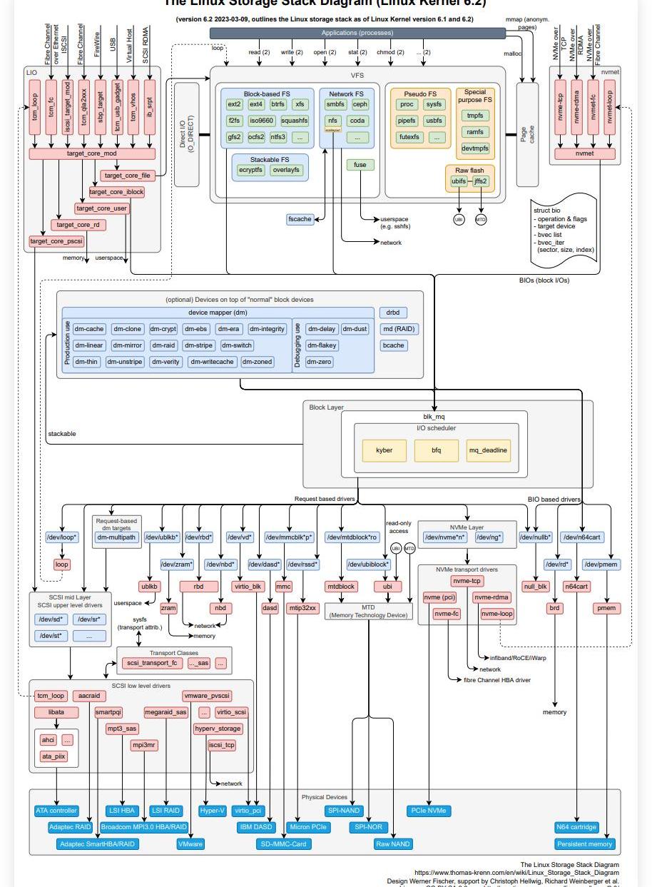 磁盤IO一般會導致系統瓶頸,磁盤IO棧比較長,分析起來難度不小。熟悉IO棧,有助于我們發現問題(https://www.thomas-krenn.com/en/wikiEN/images/c/c2/Linux-storage-stack-diagram_v6.2.pdf)