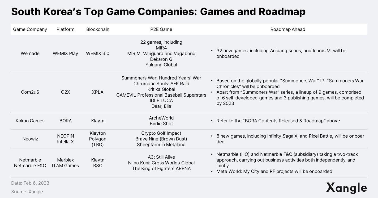 鑒于Com2us在游戲行業發生向移動設備的關鍵轉變時保持領先地位的出色業績,該公司似乎已經在當前向區塊鏈和Web3的過渡中發現了機會。在區塊鏈的眾多元素中,Com2us一直專注于將“所有權”轉移給用戶。從這個意義上說,其區塊鏈整合的首選游戲類型是用戶能在游戲中保有資產的RPG游戲,以及游戲經濟相對容易建立的休閑游戲。Com2us的Web3戰略可以分為兩部分:一是推動基于Cosmos的Layer1生態系統的增長,以及將自己的內容納入XPLA。盡管在去年Terra和FTX垮臺后,該戰略的前一部分在總體路線圖時間表上有所延遲,但預計開發人員的基礎設施將于今年年底完成。