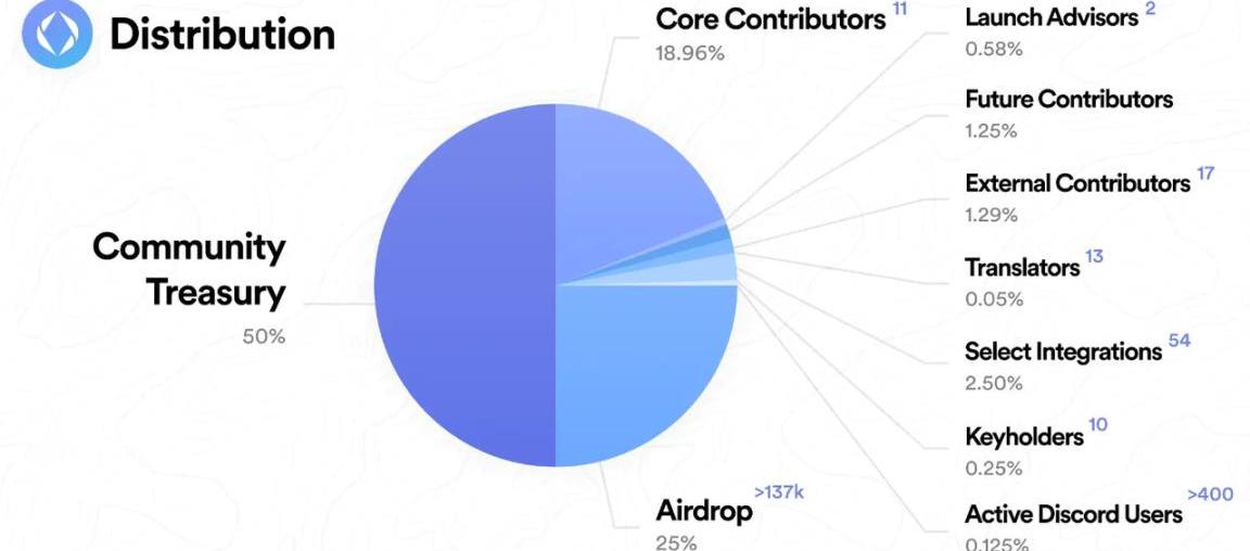 ENS是一個非營利組織,通過ENSLabs運行Web3域名的基礎設施。我們認為互聯網域名是基本的互聯網基礎設施,它不應該被單一的中心化實體所擁有——就像SMTP等基礎層互聯網協議不被任何人所擁有一樣。ENS章程為DAO采取合法治理行動提供了一套有約束力的規則。就「加密存在感」而言,ENS是相當強的。ENS的Twitter賬戶有超過24萬關注者。Discord頻道有超過4.3萬成員,LinkedIn賬戶有超過1.7萬關注者。我們注意到,許多Twitter用戶在面向公眾的個人資料中展示其「.eth」地址——這是一種證明用戶是「加密原生用戶」的「社交證明」方式,可以作為該協議的一種強有力的有機營銷形式。