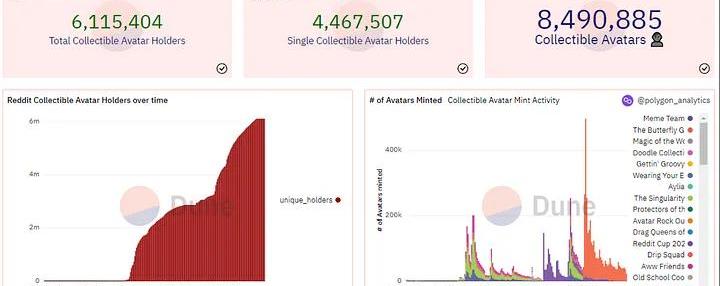 到目前為止,Opensea聚集了300萬用戶,但Reddit在短短六個月內就已經聚集了超過600萬持有者。當然,這些產生的錢包在Polygon網絡上并不經常活躍。但Reddit已經有效地吸引了許多用戶進入區塊鏈生態系統。