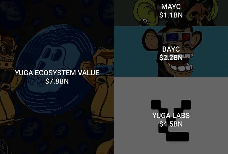 在Otherdeeds銷售之前的幾天,BoredApeYachtClub、MutantApeYachtClub和$APE代幣的交易價格均創下歷史新高。BAYC擁有驚人的約40億美元的市值,MAYC已達到約20億美元,而$APE代幣的市值為65億美元。YugaLabs在不到兩年的時間里,成功將一萬個沒有任何實用性的猴子JPEG轉化為一個價值數十億美元的帝國!值得注意的是,NFT收藏品的市值是根據底價乘以流通供應量計算的,因此如果有人想一次性購買所有流通的Yuga生態系統資產,實際估值可能會低得多。
