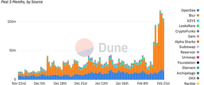 https://twitter.com/vasa_develop/status/1627345255963009027在$BLUR代幣上:懷疑未來的大部分利潤將流向股權,而不是代幣持有者(由于監管挑戰,交易結構)治理有價值,但價值有多大?目前形式的BLUR是一個MeMe代幣。它可以依靠敘事和關注度,同時為平臺的用戶獲取和流動性提供補貼以30億美元的FDV計算,與其他使用代幣的市場相比,Blur感覺價值很高:@LooksRare和@the_x2y2所有這些都讓我覺得「Blur=OpenSea殺手」的敘述已經過時了。Blur現在處于一個高點(關注度+使用率),我不確定下一個主要的催化劑會是什么。如果說有什么不同的話,那就是它會失去更多。當我坐下來詳細評估Blur和它的空投時,這些是我個人想法的一部分。我一開始并沒有打算公開這篇文章,但也可能引發一些討論!讓我知道你的想法:同意還是不同意?原地址