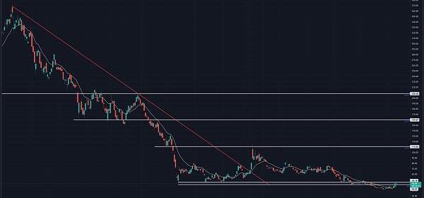 COIN,日線圖Coinbase價格從最低點反彈了約40%+,CathieWood于12月購進了約300萬美元的股票,可能是市場底部的表現,如果反彈持續強勢,可以認為底部已現,多頭反轉。但美國銀行下調了Coinbase的評級,目標價由50調整為35美元,理由為2023年加密市場前景黯淡,公司業績將下滑。小結:根據分析師預測,美股可能在上半年見底,左側建倉位置3600、3300、3000,反轉可能發生在下半年。抄底Coinbase股票的收益可能好于直接抄底BTC本身。3.加密市場