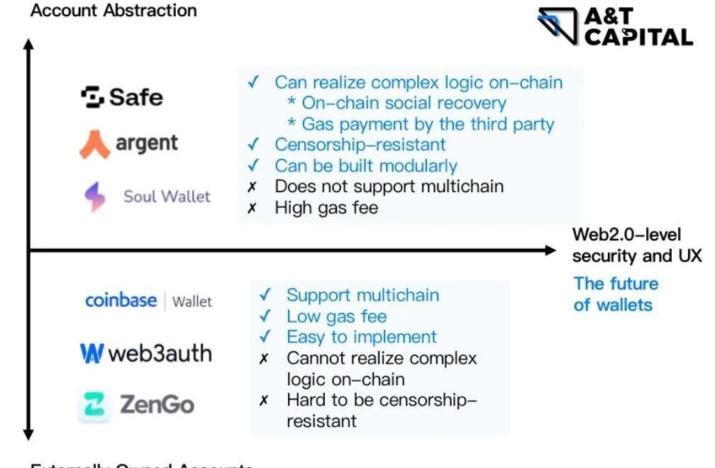 4.錢包:賬戶抽象錢包和外部擁有賬戶(EOA)錢包通過不同的權衡將實現更低的使用門檻和更優的交互體驗