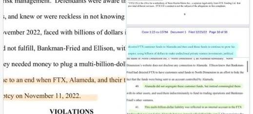 12月22日,前FTXCEOSamBankman-Fried從巴哈馬被引渡到美國紐約并被FBI拘留,紐約聯邦檢察官上周公布了一項涉及八項罪名的起訴書,如果所有指控都被定罪,他可能會面臨數十年的牢獄之災,而前AlamedaResearchCEOCarolineEllison已承認共謀對FTX客戶進行電匯欺詐、對AlamedaResearch貸方進行電匯欺詐、商品欺詐、證券欺詐和洗錢等七項罪名,最高可判處110年監禁;FTX聯合創始人GaryWang則承認共謀對FTX客戶進行電匯欺詐、商品欺詐和證券欺詐等四項罪名,或將面臨最高50年的監禁。根據一份流出美國證券交易委員會在紐約南區法院提交的法律文件,我們從中梳理出本案的12個要點: