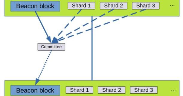 分片被視為以太坊可擴展性的未來,根據Vitalik的說法,分片是讓以太坊生態系統實現每秒數千筆交易的關鍵。以太坊社區從2013年就開始討論分片,分片方案經過多次修改,在2022年,隨著Danksharding方案的提出,以太坊通往分片之路變得清晰可行。關于以太坊的分片方案,比較為人熟知的版本是在2018年臺北的一次研討會上,以太坊基金會的研究員與核心開發者們將權益證明和分片研究統一起來,形成了一個分三個階段的「以太坊2.0」路線圖:階段0帶來信標鏈階段1加入數據分片在階段2,在每個分片加入虛擬機,以在系統里實現計算。分片數量經歷最初定為100,隨后提高到1024,到這個版本的路線圖調低為64。此版路線圖采用的分片機制指的是對數據庫進行橫向分割,即每條分片鏈都擁有一個節點子集,在該鏈上進行工作。64個分片區塊都有各自的提議者和從驗證者集中通過隨機分配組成的委員會,他們獨立驗證可用的分片數據。在這個設計里,所有分片是無法得到整體驗證的,而且每個提議者都有能力破壞整個流程。在分片間混洗驗證者也相當麻煩。而且除非引入非常嚴格的同步假設,否則很難保證投票能在一個slot里完成。