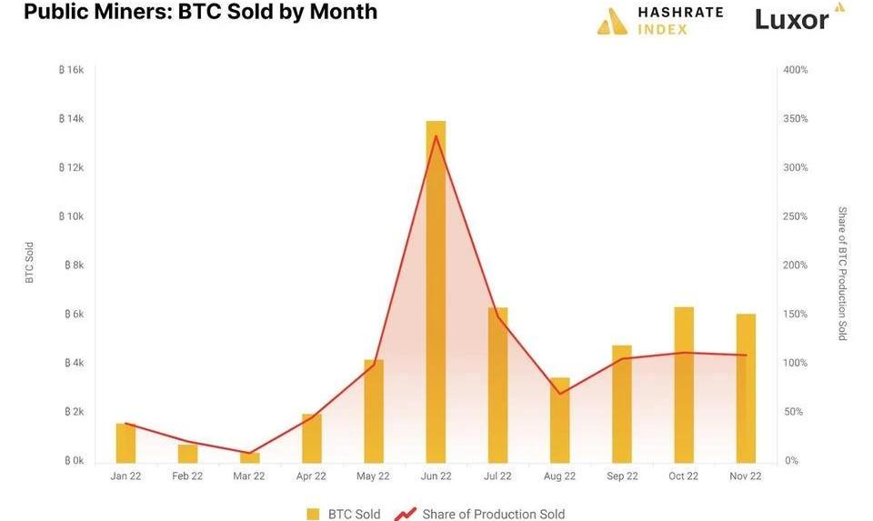 6月是礦企的拋售高峰2022年6月之時,CoreScientific以1.67億美元的價格出售了7202枚比特幣,這占其持幣量的約90%。而彼時,比特幣價格早已從超過6萬美元的高點跌至僅2.3萬美元。收到退市警告的加拿大礦企Bitfarms也曾面臨著相同的局面。2022年6月,該公司出售了3000枚比特幣,以此償還了部分該公司從Galaxy獲得的1億美元貸款。通常,礦企都會持有挖礦產出的大部分代幣,但是現金流的壓力讓其不得不在熊市中地位拋售。此外,轉讓出售礦機來斷臂求生,也成為了加密礦企的救命稻草。12月20日,礦企GreenidgeGeneration與其貸方NYDIG就重組約7400萬美元的債務簽訂一份不具約束力的條款清單。根據協議,NYDIG將購買算力為2.8EH/s的Greenidge比特幣礦機。而更為低效的1.2EH/s礦機將仍然留給該公司使用。這可為GreenidgeGeneration換來的是減少約5700萬至6800萬美元的債務。令投資者瞠目的是,該公司在2022年10月和11月期間的平均月現金消耗率約為800萬美元,其中每月約550萬美元與支付給NYDIG的本金和利息有關。其債務支出占比極高。