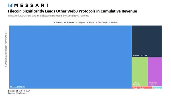 迄今為止,Filecoin在這六個Web3協議中創造了最多的收入,該協議生命周期收入約為380萬美元。