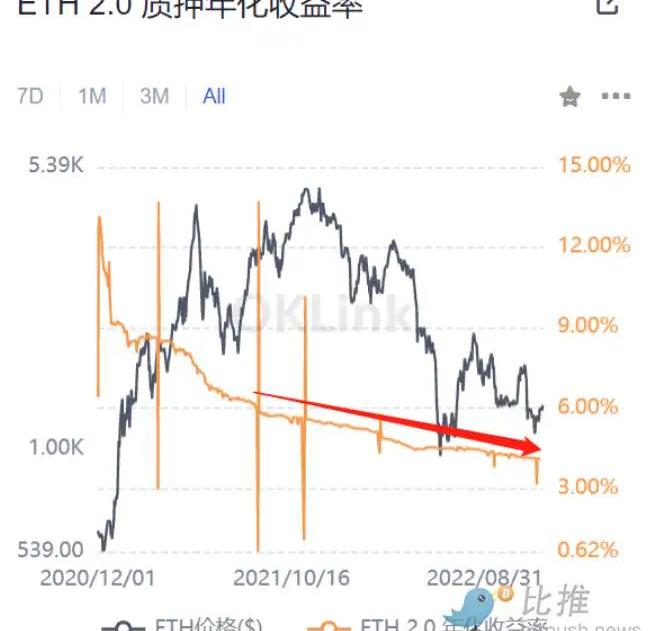 雖然以太坊年化收益率整體趨于下降,但以太坊的保值性較強,以太坊質押量一直走高。據Oklink數據顯示,截止12月6日,以太坊質押率為12.99%。