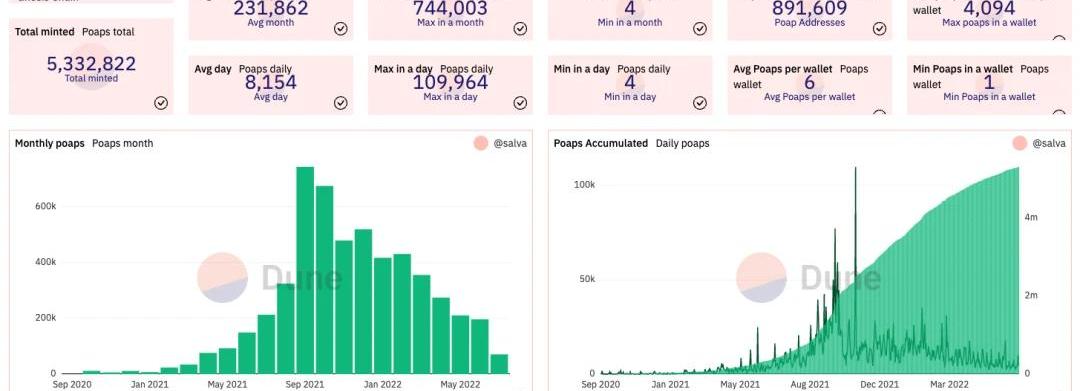 來源:DuneAnalytics-@salva雖然僅僅用POAP不能展現一個人太多信息,但它為其他SBT的出現奠定了基礎。ProjectGalaxy