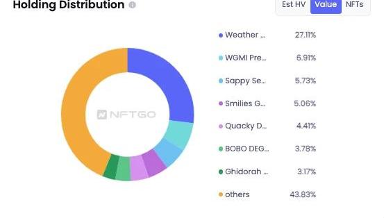 Address:0xb32b4350c25141e779d392c1dbe857b62b60b4c9FlipTimes:964FlipsRatio:74%HoldingValue:2.36kETHNFTs:6354PnL:-351.38ETHNFTGoProfile:https://nftgo.io/account/ETH/0xb32b4350c25141e779d392c1dbe857b62b60b4c9/NFT該地址持有的現總估計價值排名前列的兩個項目為InvisibleFriends和BAYC,分別占據了12.90%和12.05%。