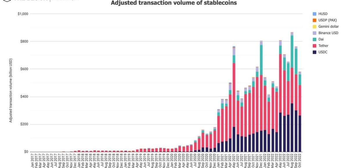 調整后的穩定幣鏈上交易量下降24.2%至5804億美元,連續第3個月USDC交易量>USDT;已發行供應量小幅增長0.3%至1371億美元,其中就市場份額而言,USDT上升至50.7%和USDC下降至28.5%。年初至今已發行的供應量下降了4.3%: