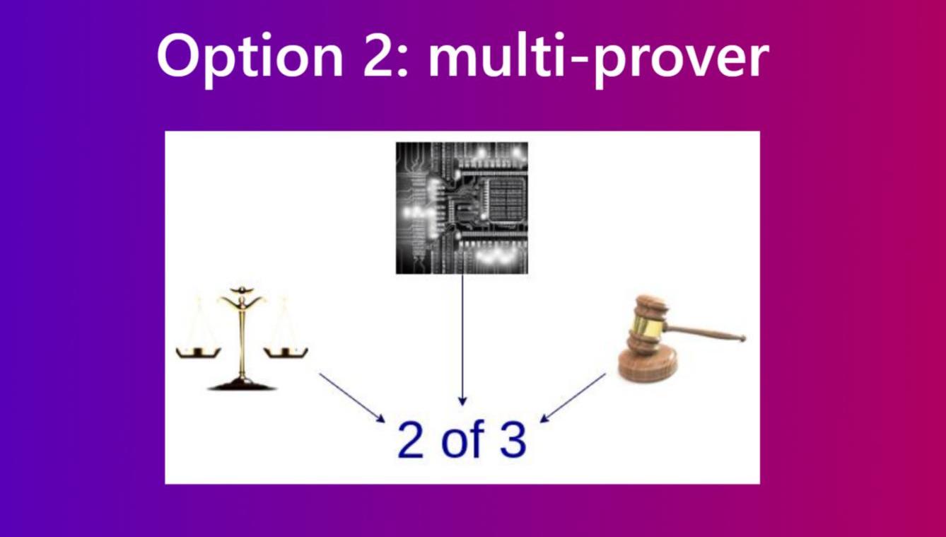 方案三是兩個證明人再加上治理小組,實行2/3保證機制。它的好處有:不必信任治理;當一個證明系統出現漏洞,另一個系統不受影響;理想情況下,兩個證明程序應該具有非常不同的結構,以最小化同時出現漏洞的機會;Vitalik還表示「現在ZK-ProvingEVM區塊需要幾個小時,但未來技術會改進,我相信你們,我們會在12秒內得到ZKSnarks證明」。