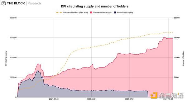 7、高Gas費阻止套利者將溢價保持在低位,因為最近,許多投資者增加了DPI的敞口。自7月以來,DPI代幣供應量增加了34.8%,即使沒有流動性挖礦激勵。