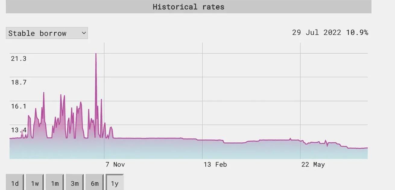 Aavescan效果是顯著的,自從2021年11月推出以來,DAI可變借款利率在Aave上已經穩定在1.7%至3.8%范圍內,同時穩定借款利率的結果是相似的。