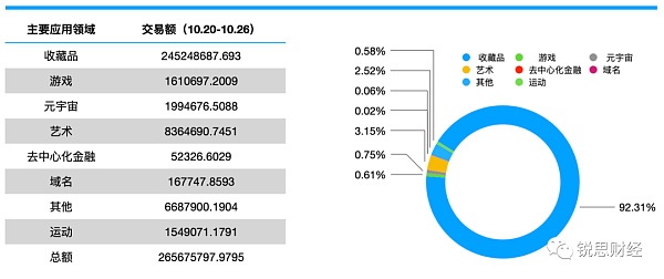 根據?Oklink?在 2021 年 10?月 20?日至 10 月 26?日的統計來看,收藏品類 NFT?交易最為活躍,7 日交易額超過 2.4?億美元,占總額的比例高達 92.31%,其中 CryptoPunk 項目交易額位居第一。