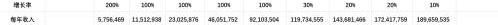 如前述,隱私資產轉為公開資產,產生的手續費,將直接銷毀。故,我們可用TornadoCash數據做參考。上圖為TornadoCash每月代幣Withdraw情況。2019年12月至2020年11月,共計12個月內,贖回37,756枚ETH,占協議總贖回量20.52%。第二年,贖回134,282枚ETH,占總贖回量72.99%,增長率達255.66%。TornadoCash截至目前,共產生費用收入18,701,979美元。我們假設每次交互Gas費相同,且把操作簡單二分為質押Deposit和贖回Withdraw。則贖回產生總收益為9,350,989美元。第一年贖回產生手續費收益為,1,918,823美元,第二年則為6,825,287美元。由此,我們的已知條件是:A.第一年收入為1,918,823美元。B.當前估值14億美元。C.假設通常DeFi可達到10%無風險收益,故貼現率取10%。則有如下計算方式:每年收入=1,918,823*?,其中n為年份。貼現現金流,就是如果在未來某年產生這些收入,那現在值多少錢。貼現現金流=每年收入/?可得出如下結果: