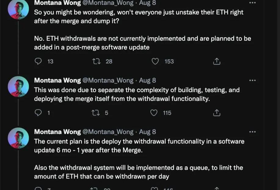XRP/HKD-4.42%加密世界的太陽將在9月16號冉冉升起,Vitalik搖晃著Malbec葡萄酒,輕啜了一口后說道,一切都恰到好處。像刀叉劃過黃油一樣絲滑,批評者聲稱永遠不會到來的時刻終于來到了。Vitalik打出一條任務完成的推文,正式宣布合并成功完成,感謝所有為這一刻的到來而做出貢獻的人,隨著主流媒體的大肆傳播,數以百萬計的腦殘粉蜂擁而至。