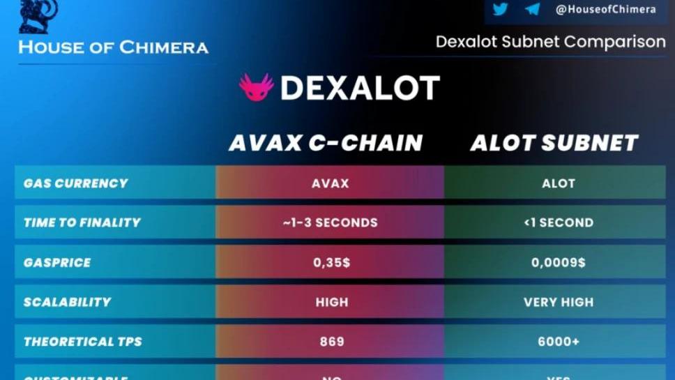 子網分私有鏈和公有鏈,都可根據客戶需求定制化。目前正式運行的兩個子網,均是游戲類。不過,Avalanche目前沒有子網間的通信方案,主網和subnet之間的資產轉移目前由第三方橋處理。DFKchain4.1從Harmony上吸引過來的王牌鏈游DeFiKingdom建立子網DFKchainDFKSubnet應用的是定制EVM,在EVM中結合了有向無環圖(DAG)模型,允許區塊鏈以較低的成本進行高效擴容。目前網絡僅8個驗證節點,40,169個地址。最近網絡使用率低于1%,粗糙預估理論TPS能達到600SwimmerNetwork5.14之前在C鏈上的游戲Crabada建立子網目前網絡僅8個驗證節點,24,892個地址。最近網絡使用率低于4%,粗糙預估理論TPS能達到150未來可能的子網shrapnel:3A射擊類游戲ArrowMarkets:去中心化期權協議Dexalot:高性能DeFi子網,下圖為與C鏈的對比,按照宣傳參數,各方面優于C-chain