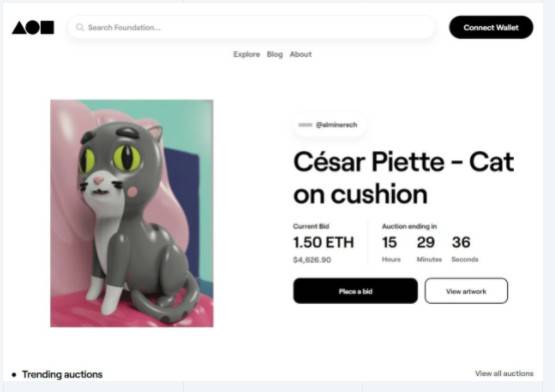 一旦您使用 WalletConnect 連接了自己的 MetaMask 或是其他軟件錢包,就能很方便地在 Foundation 市場上進行操作,您還可以像在常規拍賣網站上一樣在計時拍賣中執行出價。