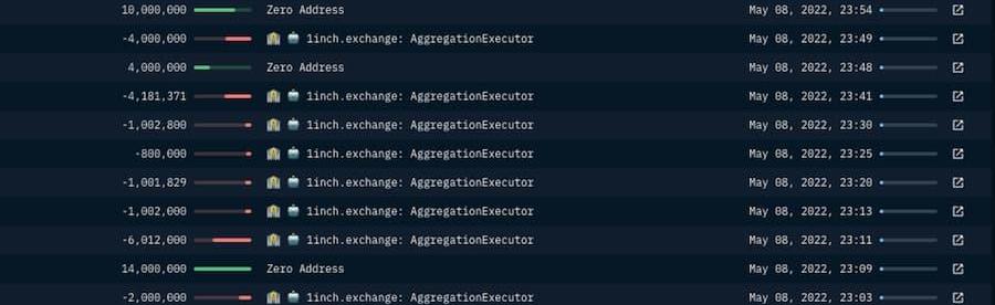 圖13:5月5日至5月8日,按交易額計算,從Terra到Ethereum的前10個錢包(UST)。深挖可疑的錢包